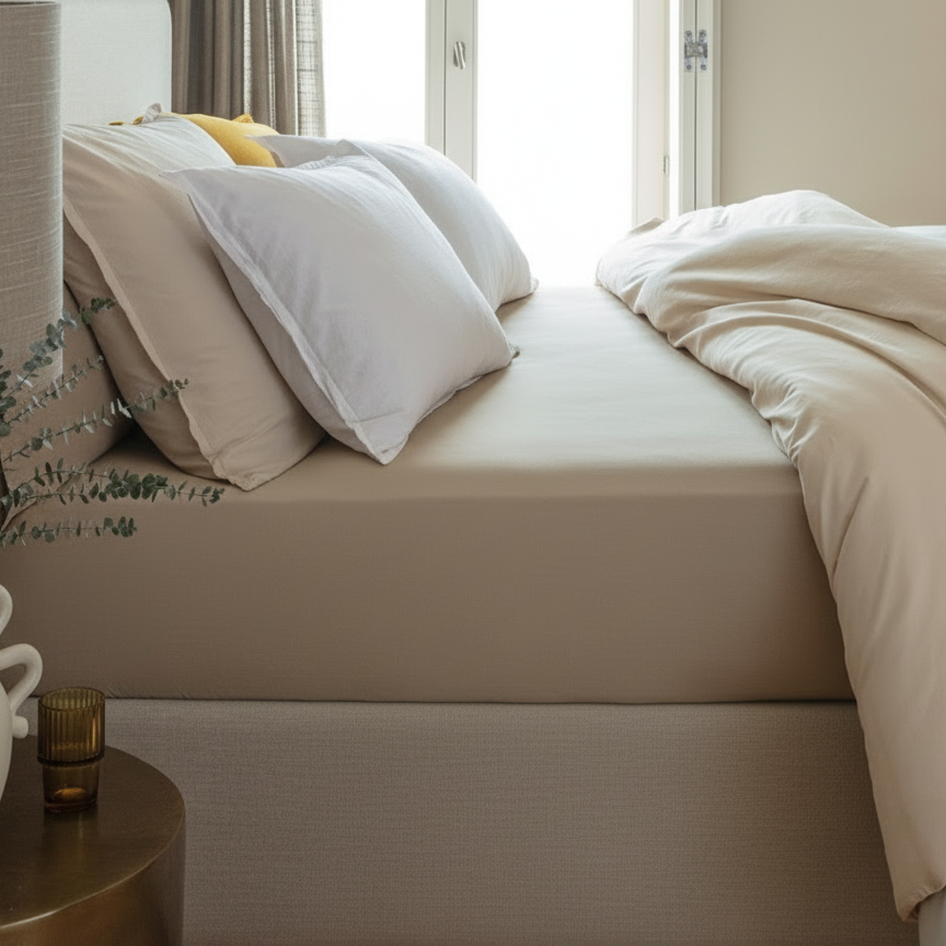 É um processo especial que suaviza as fibras do algodão, tornando o lençol mais macio, com aspeto moderno, fácil de cuidar e sem necessidade de passar a ferro.